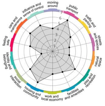Previous Image Next Image generic-place-wheel The Place Standard wheel shows how people scored different aspects of their area. 1 being very poor, 7 being excellent.